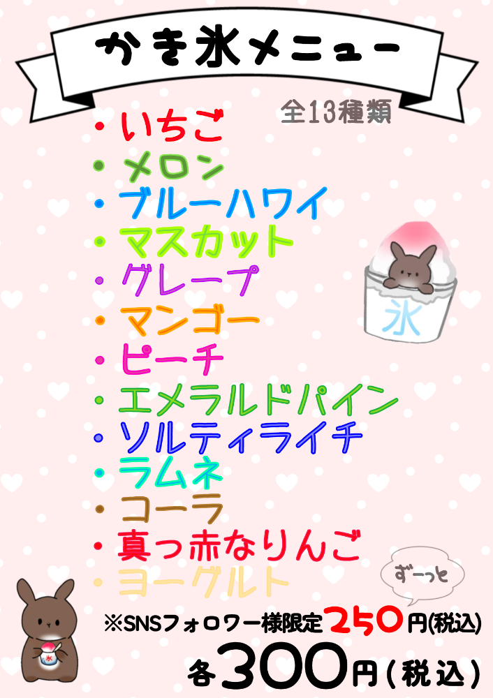 暑い夏はやっぱりかき氷!!昔ながらのかき氷にラビ―カステラを上に乗っけてみました。
